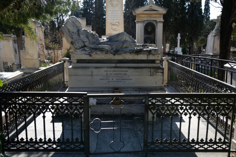 Στο πρώτο νεκροταφείο Αθηνών, υπάρχει το περίφημο άγαλμα της κοιμωμένης του Χαλεπά. Είναι το πιο γνωστό έργο του Τηνιακού γλύπτη Γιαννούλη Χαλεπά, ενός ανθρώπου με εκπληκτική ιστορία μετεωρισμού ανάμεσα στην τρέλα και την καλλιτεχνική ιδιοφυία. Η κοιμωμένη του είναι