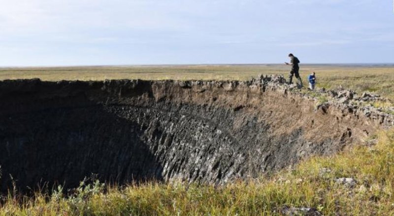 Έναν τεράστιο κρατήρα βάθους 30 και διαμέτρου 20 μέτρων, εντόπισε κατά τη διάρκεια του καλοκαιριού ρωσικό τηλεοπτικό συνεργείο που πετούσε πάνω από την τούνδρα της Σιβηρίας.