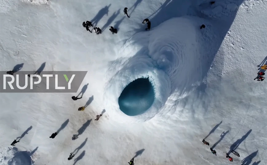 Μάλιστα σύμφωνα με το Ruptly, το «ηφαίστειο πάγου» μπορεί να φτάσει τα 14 μέτρα ύψος.