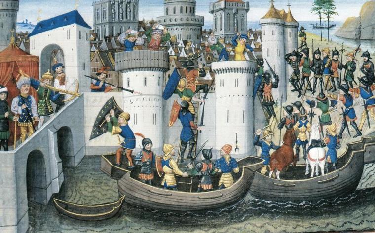 Ο στόλος των Ενετών και Σταυροφόρων έφθασε προ των τειχών της Κωνσταντινούπολης στις 23 Ιουνίου 1203. Οι νεοφερμένοι έμειναν κατάπληκτοι από όσα έβλεπαν τα μάτια τους: «Δεν μπορούσαν να φαντασθούν ότι υπήρχε στον κόσμο τόσο οχυρή πόλη. Είδαν τα υψηλά τείχη, τους ισχυρούς πύργους, τα θαυμαστά παλάτια, τις μεγάλες εκκλησίες, που ήταν τόσες πολλές ώστε κανείς δεν θα το πίστευε αν δεν τις έβλεπε με τα μάτια του. Το μήκος της, το πλάτος της, έδειχναν πως ήταν βασιλεύουσα». Με τα λόγια αυτά περιγράφει τις πρώτες του εντυπώσεις ο ιστορικός και εκ των ηγετών της Σταυροφορίας Γοδεφρείδος Βιλλεαρδουίνος.