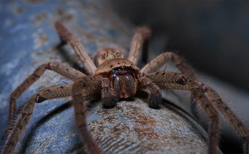 Οι αράχνες Huntsman είναι δηλητηριώδεις και μπορούν να μεγαλώσουν έως και 12 ίντσες (30 εκατοστά) στο άνοιγμα των