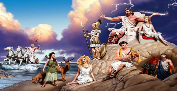 Δίας – Ζευς = δύναμις, αρμονία ( αρχική αιτία των πραγμάτων ). Ποσειδών = ισορροπία των υγρών στοιχείων, για να υπάρχει ζωή. Απόλλων= θερμότητα για την επιβίωση του ανθρώπου και της φύσης. ( Ήλιος, Φως , Θεός του Φωτός ).