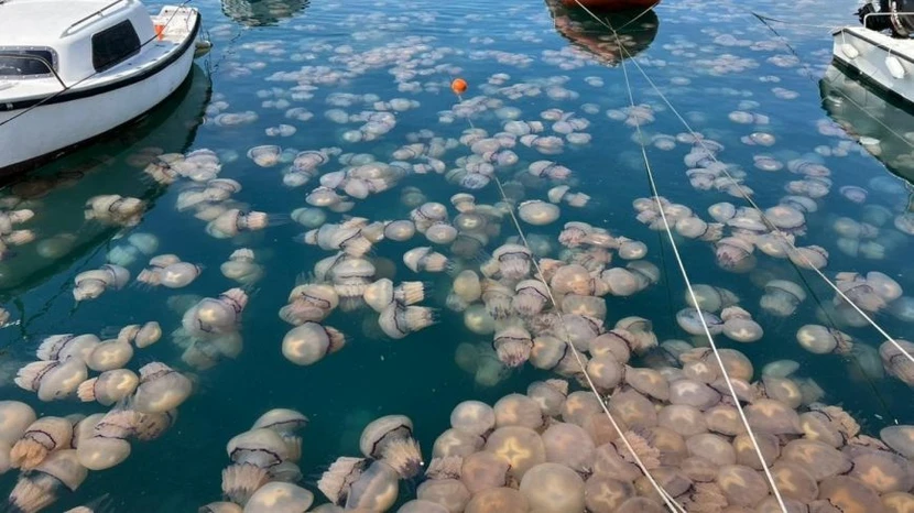 Rhizostoma pulmo στην πόλη Trieste της Ιταλίας στην Αδριατική θάλασσα – Ιούνιος 2022