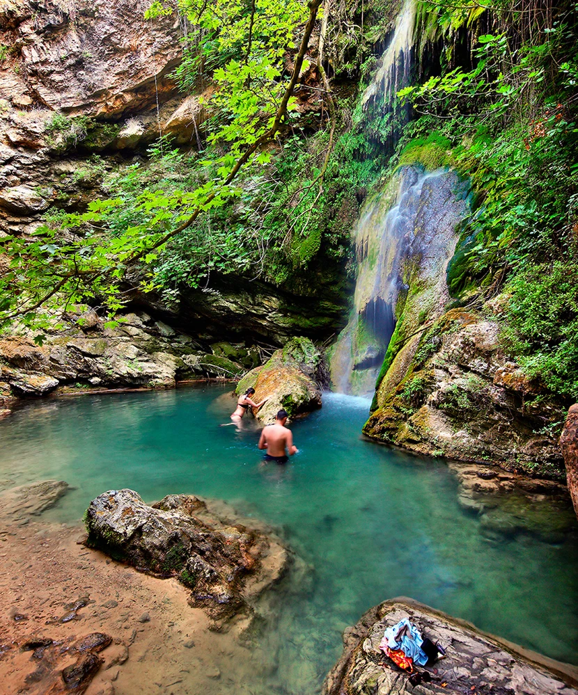 Πολύ κοντά στη χαρακτηριστική πλακόστρωτη πλατεία του χωριού, συναντάται αυτό το ειδυλλιακό και μαγευτικό τοπίο: καταρράκτες ύψους 20 μέτρων με λαμπερά νερά που πέφτουν ερμητικά και σχηματίζουν μια φυσική λίμνη βάθους περίπου 3 μέτρων ανάμεσα σε θεόρατα πλατάνια, η οποία για τους πιο τολμηρούς καθώς τα νερά της είναι αρκετά κρύα, αποτελεί ιδανική επιλογή και για δροσιστικά μακροβούτια.
