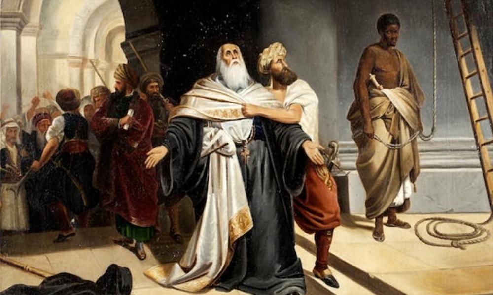 Στις 22 Φεβρουαρίου 1821 ο Αλέξανδρος Υψηλάντης περνάει τον Προύθο και κηρύσσει την επανάσταση στη Μολδοβλαχία. Ο σουλτάνος Μαχμούτ ο Β΄ μαθαίνει τα νέα την 1 Μαρτίου 1821 από τον Ρώσο πρέσβη στην Κωνσταντινούπολη Στρόγανωφ, έτσι λαμβάνει βίαια μέτρα κατά των απίστων, αρχίζει πολεμικές προετοιμασίες και κηρύσσει την Κωνσταντινούπολη σε κατάσταση πολιορκίας. Ξεσπά αμέσως λυσσώδης βία των μουσουλμάνων με καταστροφές, βανδαλισμούς και λεηλασίες εναντίων των χριστιανώ. Ο πατριάρχης όπως αντιλαμβανόμαστε, ως ηγέτης των ορθοδόξων Millet Basi έχει τεράστια ευθύνη για την ζωή τους, κάθε απόφασή του θα έχει άμεσες συνέπειες στους χριστιανούς. Ο σουλτάνος αποφασίζει γενική σφαγή όμως χρειαζόταν έγκριση με την έκδοση φετφά από τον ανώτατο θρησκευτικό ηγέτη των Οθωμανών σειχούλισλάμη Χατζήχαλήλ εφένδη, οποίος αρνείται να συμμετέχει στην σφαγή και έτσι ο σουλτάνος τον παύει τον εξορίζει και διορίζει άλλον στη θέση του Ο νέος σειχούλισλάμης Φείζ Ιμάμης αναγκάζεται να εκδόσει φετφά με τον οποίο προβλέπονται οι τιμωρίες μόνο των ενόχων Ο σουλτάνος στις 11 Μαρτίου αποφασίζει να εκδώσει φιρμάνι με το οποίο χορηγούσε αμνηστία στους Έλληνες υπό τον όρο να μην συμμετέχουν σε καμία επαναστατική ενέργεια. Επίσης με άλλο φιρμάνι την ίδια ημέρα 11 Μαρτίου δίνει διαταγή στον πατριάρχη να εκδώσει γενικό αφορισμό με τον οποίο να αφορίζει όχι μόνο τον Υψηλάντη και τον Σούτσο αλλά και τους οπαδούς τους και να λύσει τον όρκο της Φιλικής Εταιρείας
