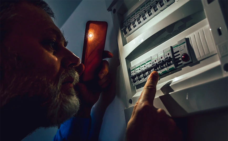 - Η πρώτη κίνηση, φωτίζοντας με το κινητό μας ή ένα κερί, είναι να βεβαιωθούμε ότι η διακοπή είναι γενική και δεν οφείλεται σε πρόβλημα στο δικό μας σπίτι. Ελέγχουμε τον κεντρικό πίνακα για να δούμε μήπως έχει πέσει ο γενικός ή κάποια ασφάλεια φωτισμού.