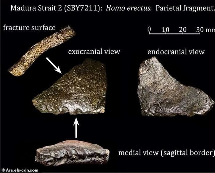 Επιπλέον, βρέθηκαν δύο θραύσματα ανθρώπινου κρανίου, το ένα μπροστινό και το άλλο μελίσσι. Σύμφωνα με τον Berghuis, η δομή του φέρει τα απολιθώματα Homo erectus που βρέθηκαν στο Sambungmacan.