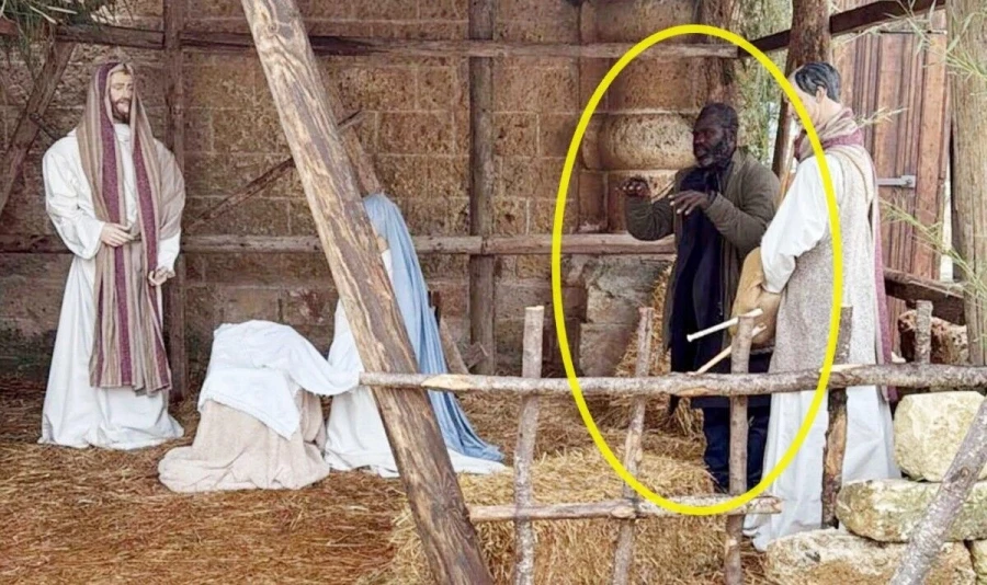 Ο 38χρονος πόζαρε στη σκηνή με τα χέρια απλωμένα ώστε να μοιάζει με τα άλλα αγάλματα, ανάμεσά τους η Παναγία, ο Ιωσήφ και