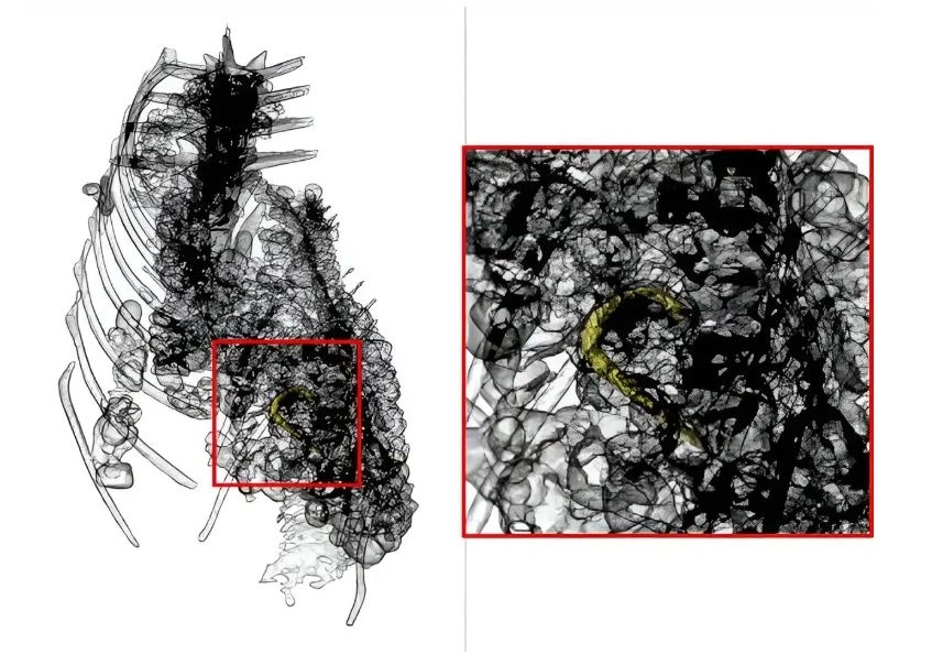 Η σύγχρονη τεχνολογία επέτρεψε στους επιστήμονες να εξετάσουν το στομάχι της θηλυκής κροκόδειλου χωρίς να πειράξουν τη μούμια. Τα ευρήματα ήταν εντυπωσιακά. Εντοπίστηκαν γαστρόλιθοι, μικρές πέτρες που καταπίνουν οι κροκόδειλοι για να βοηθούν την πέψη, αλλά και ένα ψάρι καρφωμένο σε χάλκινο αγκίστρι.