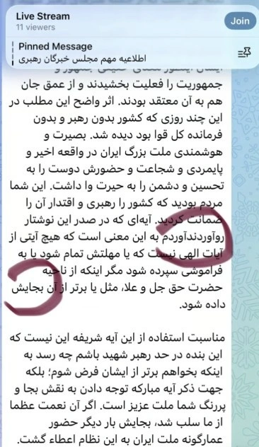 Το μήνυμα του Χαμενεΐ δημοσιεύθηκε με πολλά λάθη και σε ιερατική γλώσσα, υποδηλώνοντας σαφώς ότι κανείς δεν το διόρθωσε ή το επιμελήθηκε σωστά, και υποδεικνύοντας αναταραχές εντός του ισλαμικού καθεστώτος